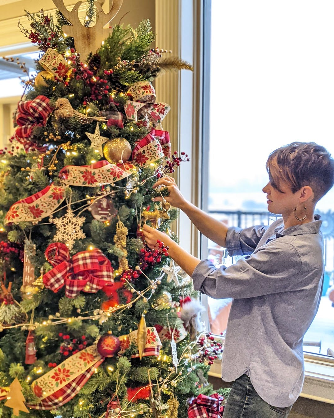 Experience the magic of a beautifully styled Christmas tree — artfully designed by our team to bring effortless elegance and festive warmth to your space.
