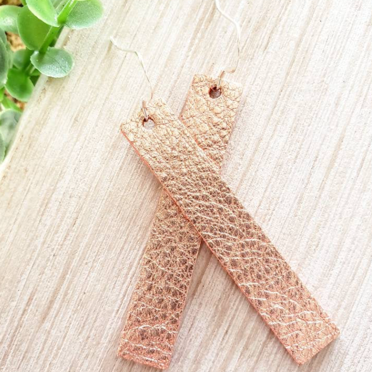 Rose Gold Leather Bar Earrings