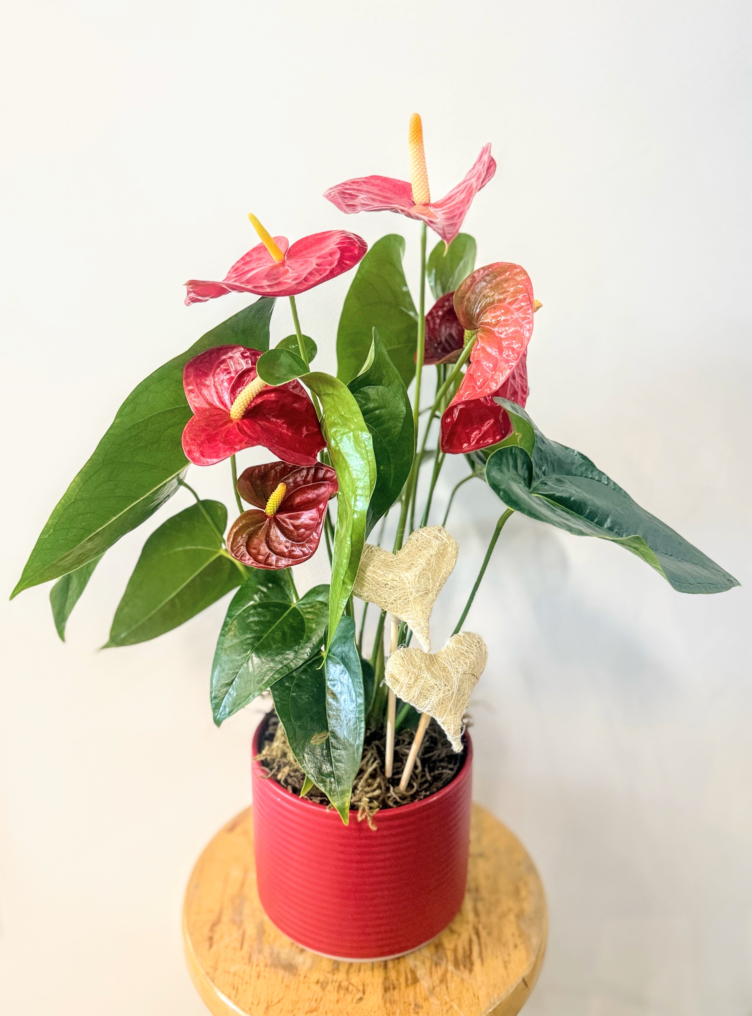 Potted in a bold red ceramic pot and finished with two sweet heart accents, this anthurium represents the connection between two partners — rooted, intentional, and growing together. With its heart-shaped blooms and long-lasting nature, it’s a meaningful alternative to cut flowers.