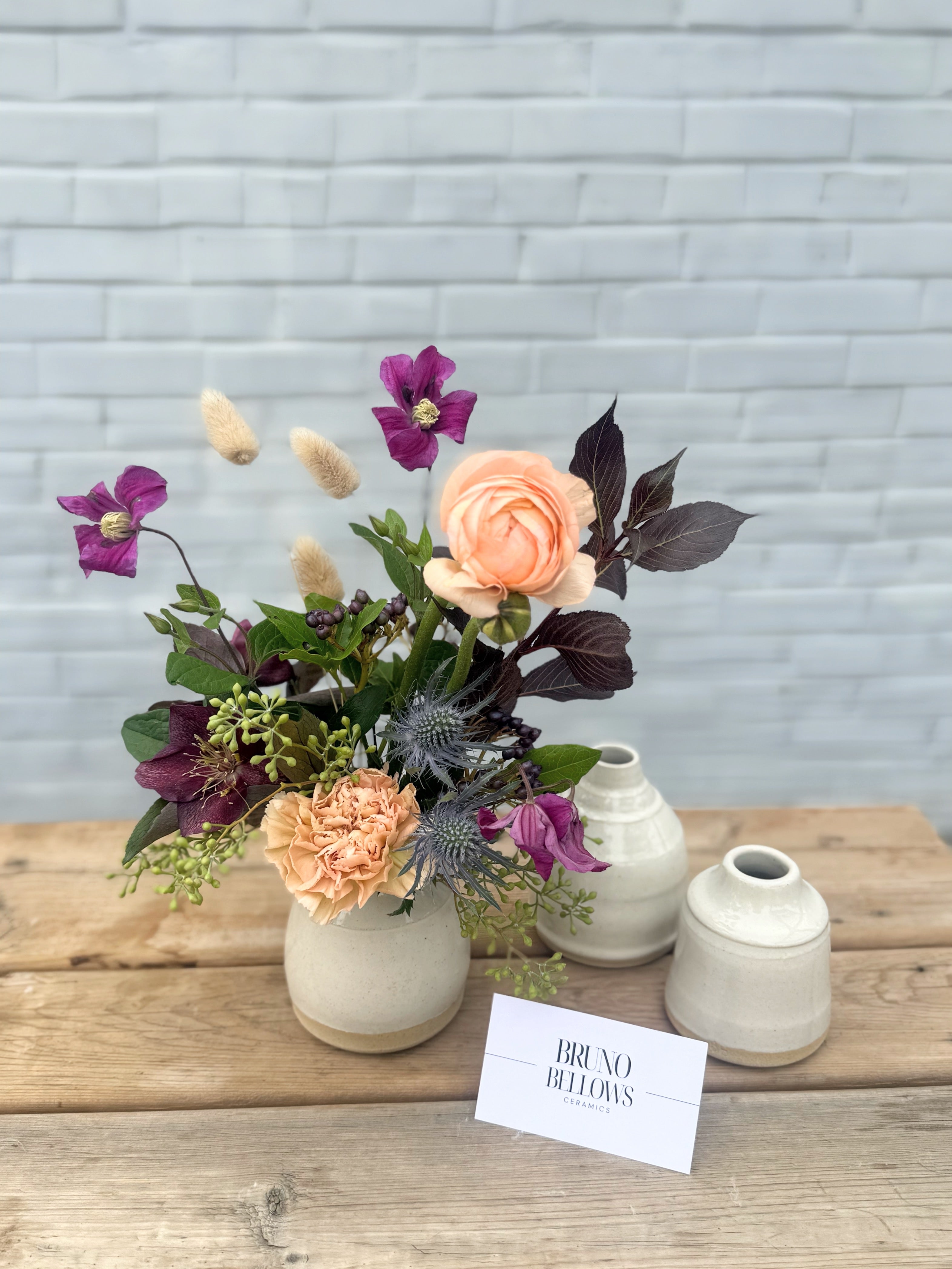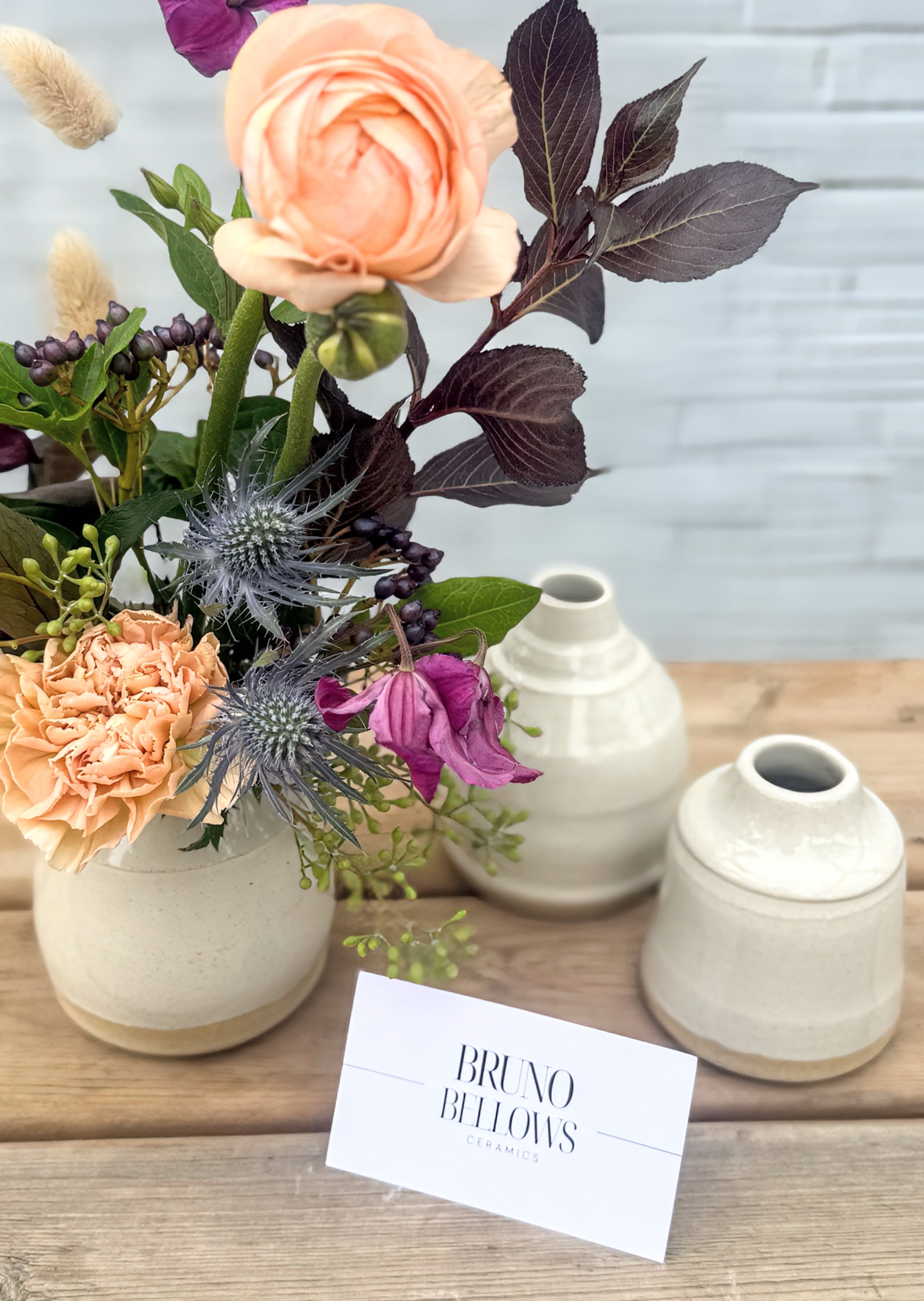 Designed in a hand-thrown pottery vase by local ceramic artist Bruno Bellows, Botanica pairs sculptural florals with a keepsake vessel youβll treasure for years to come.