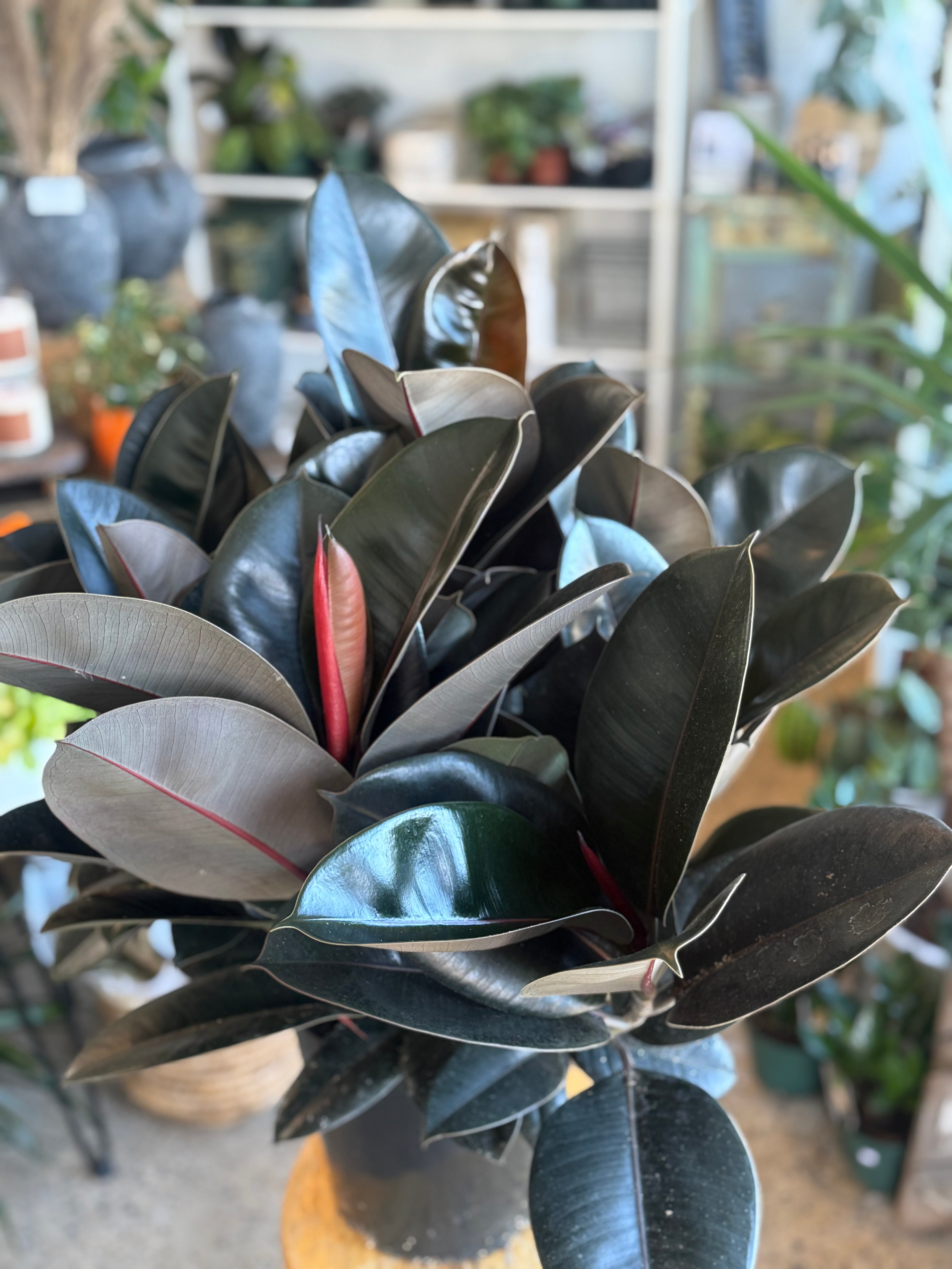 Meet the Burgundy Rubber Tree, flaunting stunning dark burgundy leaves that almost look black. This easygoing ficus loves bright light and a little drying out between drinks. Perfect for beginners, it’s a fantastic starter plant that can shoot up to 8 feet tall indoors, thriving best in bright to moderate indirect light.