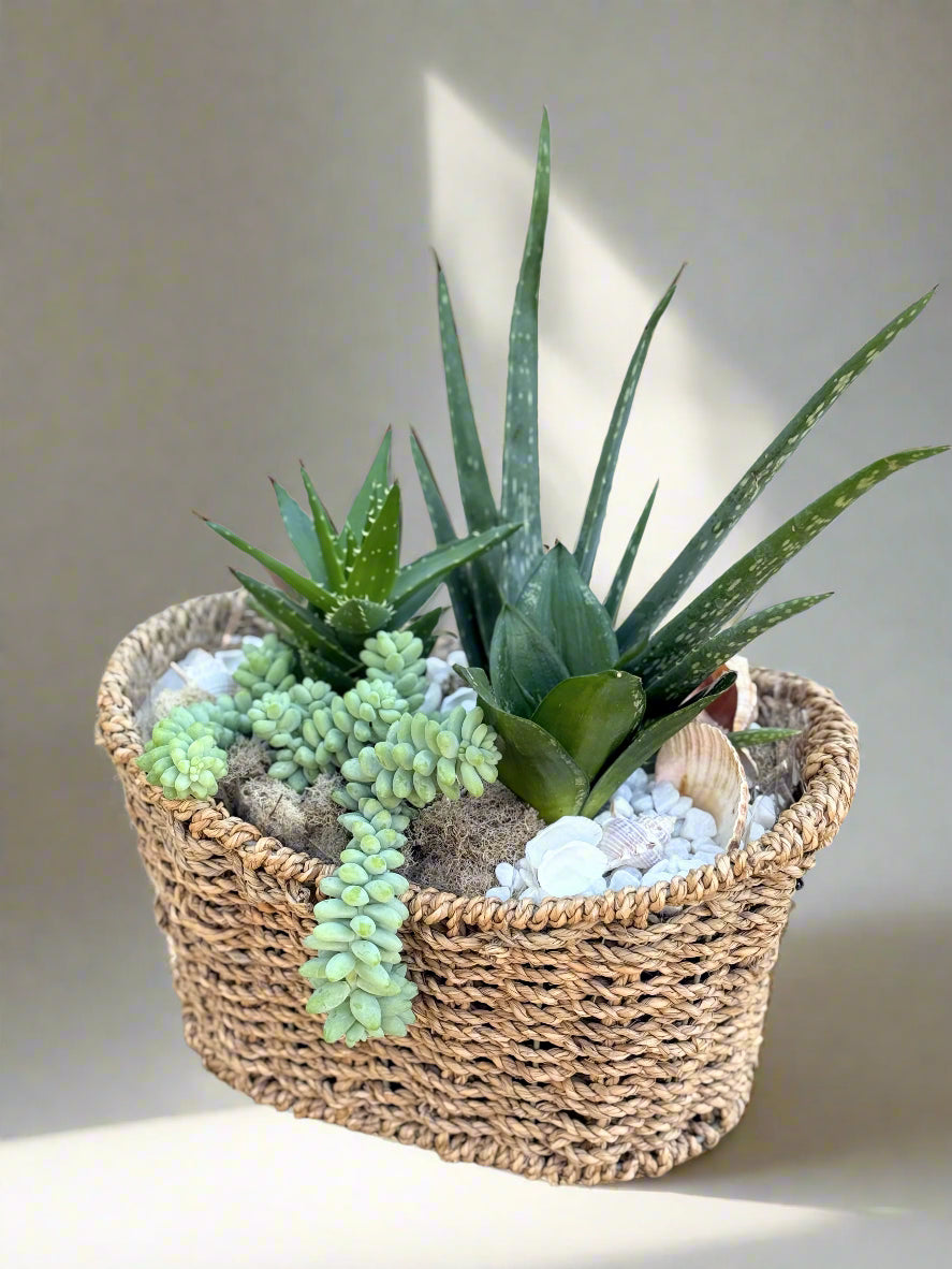 Inspired by warm climates and sculptural beauty, this custom succulent/cacti arrangement makes a striking and low-maintenance gift. Our Design Team will build your piece using hand-selected plants, natural textures, and your preferred style and colour palette. Ideal for housewarmings, thank-yous, or long-lasting appreciation gifts.