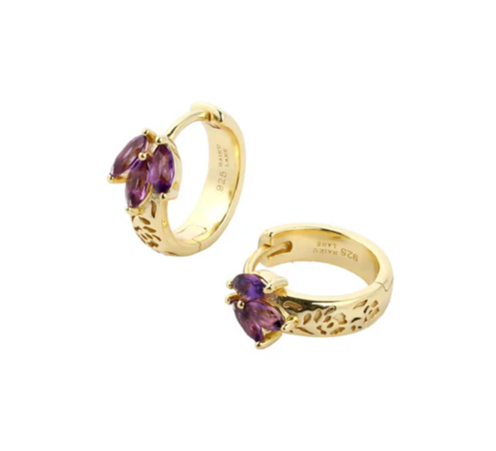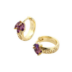 Step into a fairytale with these enchanting Fleur de Lune Huggies. With an outer diameter of 12.5mm, these hoops are crafted from luxurious 14k gold vermeil (2.5 microns thick) —a combination that offers both durability and radiant shine. The intricate floral engraving adds a touch of nature's beauty, while the amethyst stones bring a rich, mystical purple hue to the design.