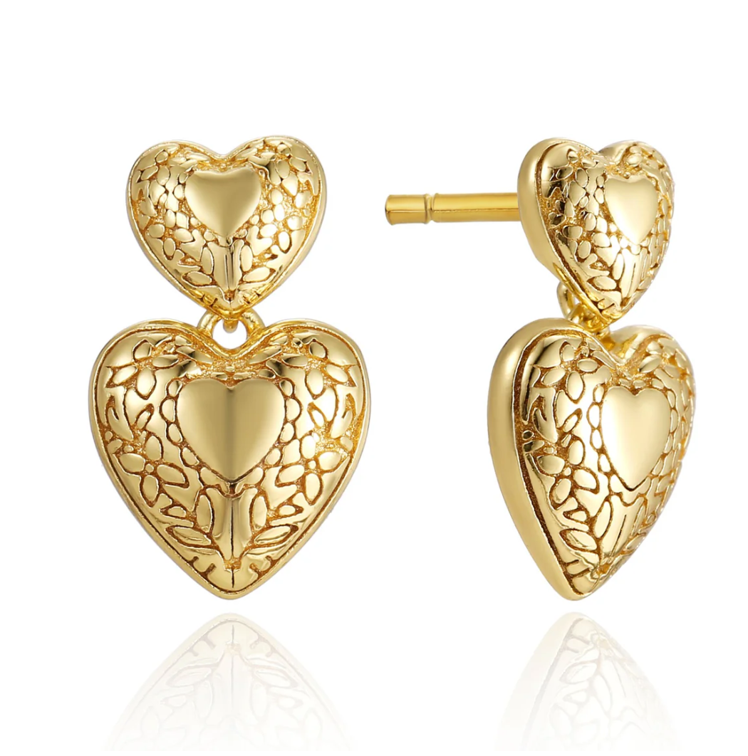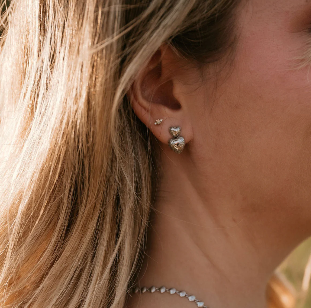 The Heart Song Earrings are a poetic tribute to love that lingers—soft, steady, and timeless. Featuring two delicately stacked hearts, the larger one resting gently atop the smaller, they echo the layered emotions of a cherished memory or an unwritten letter.