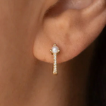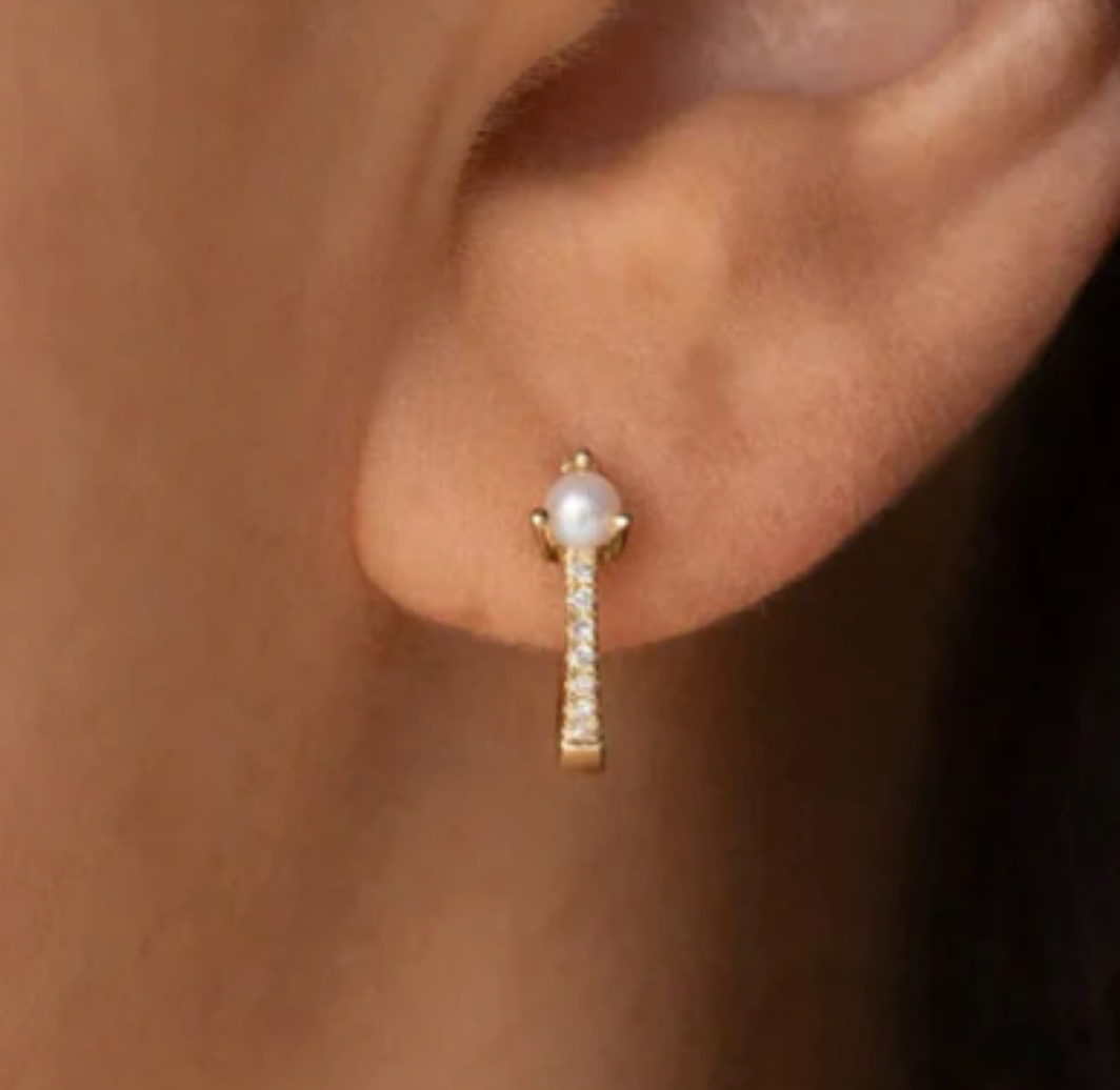 These elegant huggie earrings are a timeless tribute to Audrey Hepburn's iconic style. They feature dazzling cubic zirconia stones that add a touch of sparkle to every occasion. Delicately adorned with freshwater pearls, these earrings exude grace and sophistication. With a 10.5mm inner diameter, they offer a perfect fit for everyday wear, effortlessly blending classic beauty with modern allure.