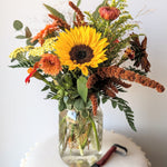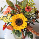 This field-grown inspired arrangement features a seasonal mix of larger focal flowers & small accent blooms. We love the farm-to-table vibe of this cute arrangement, and so do our clients - this is one of our top selling arrangements!