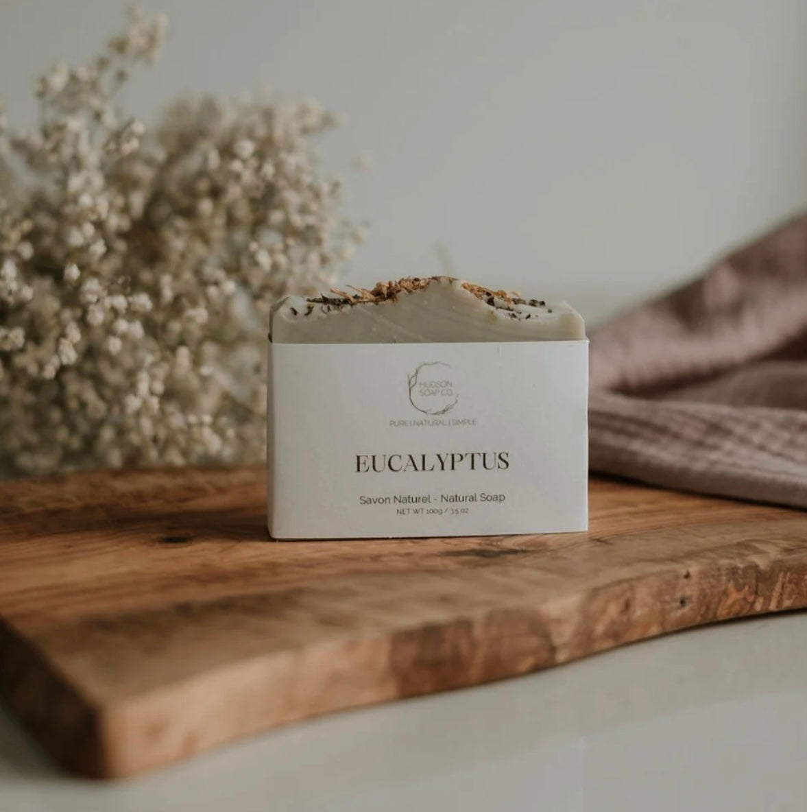 Experience the rejuvenating and crisp aroma of EUCALYPTUS essential oil in your daily routine with this all-natural handcrafted soap. With its anti-inflammatory, antibacterial, and decongestant benefits, this soap will leave you feeling invigorated while cleansing and purifying your skin. Infused with French Green Clay for a luxurious lather, it also aids in removing impurities from the skin.