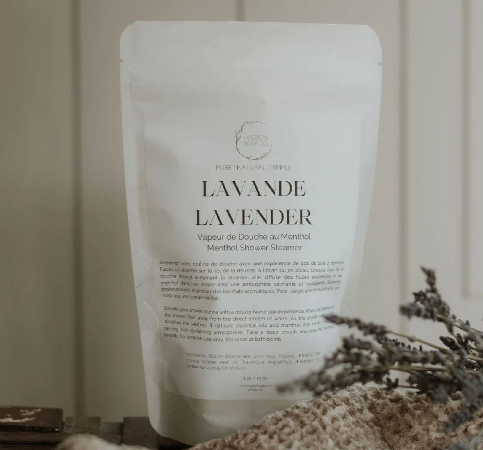 Transform your daily shower into a luxurious spa experience with our SHOWER STEAMER! Skip the bath and bring the calming and rejuvenating scent of Lavender to your routine. Let the therapeutic-grade essential oils and menthol crystals (3.5% usage rate) revitalize your mind and body. The refreshing blend of floral and herbal notes will help you relax and unwind after a long day. Derived from steam distillation of the Peppermint herb, Menthol Crystals can provide relief from congestion in the nose and lungs. Our usage rates strictly adhere to industry safety guidelines.