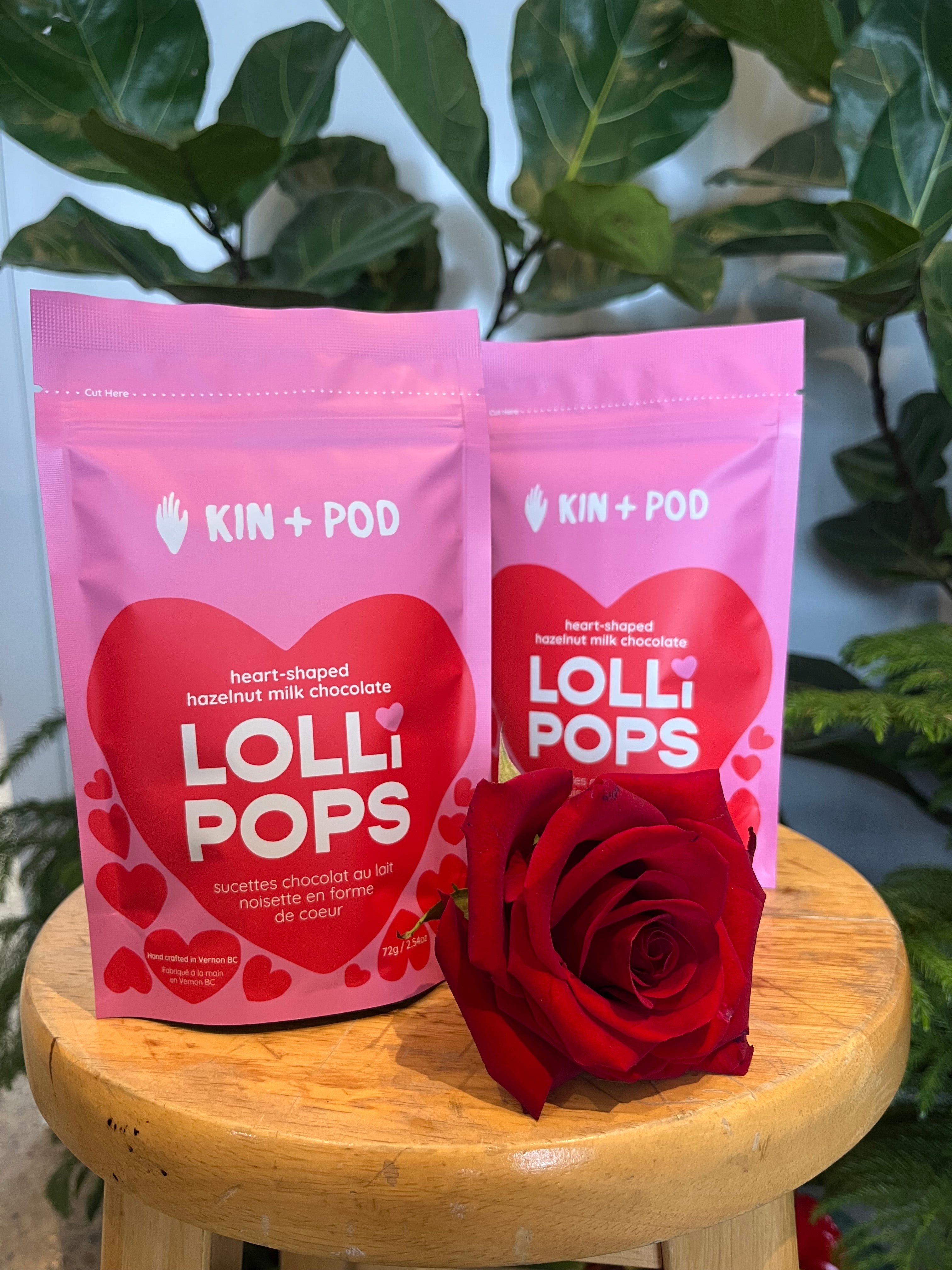 Heart-shaped hazelnut milk chocolate lolli pops.