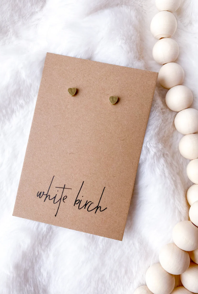 Rustic brass heart stud earrings, perfect on their own or layered with statement earrings!