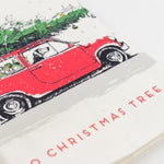 Calling all dog lovers! Who wouldn't love to receive this holiday tea towel as a gift featuring a festive pooch driving a classic Fiat.
