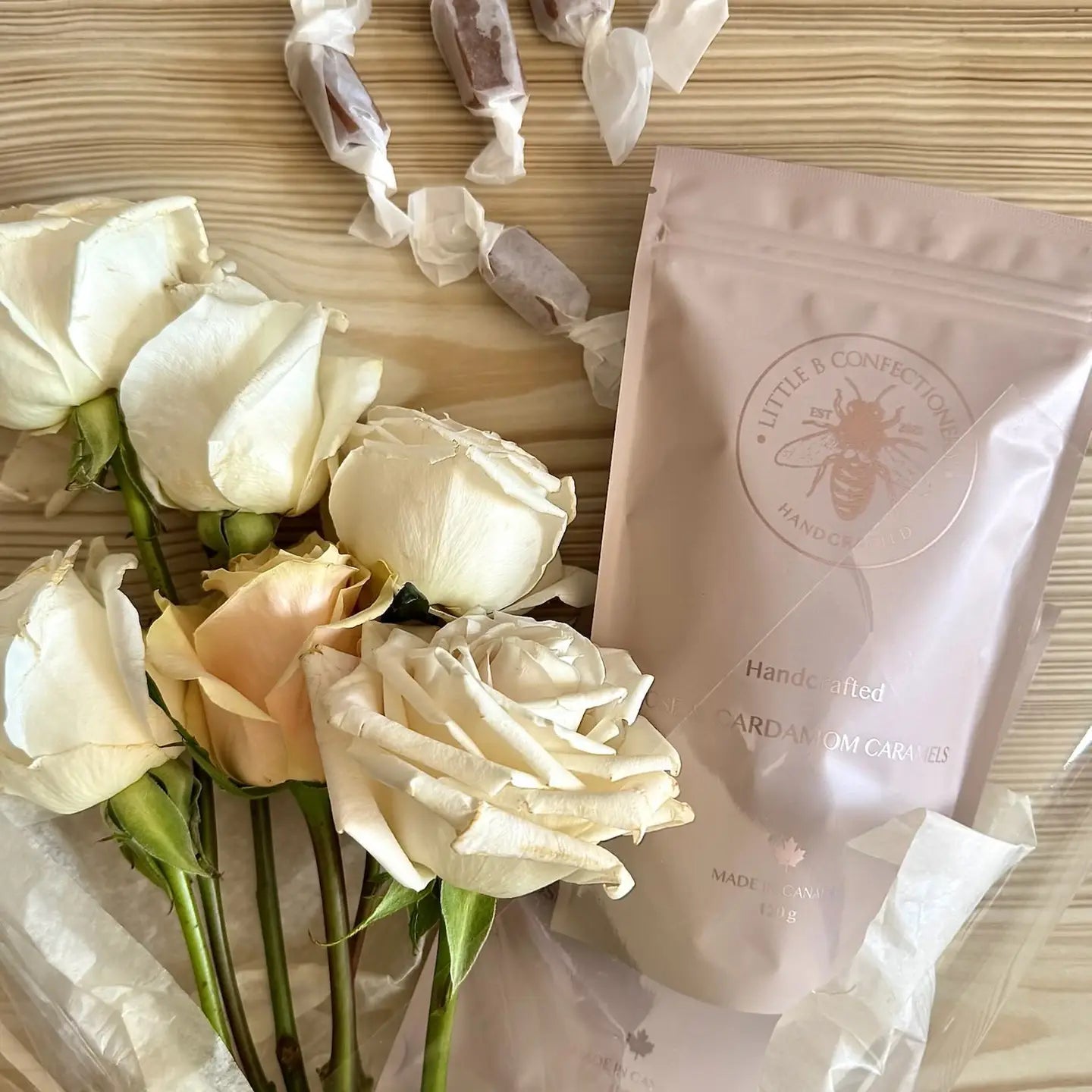 Small batch, hand cut, hand wrapped caramels. Infused with Earl Grey tea, bergamot and vanilla. This soft chewy caramel won't stick to your teeth and will simply melt into the palate. Individually wrapped in parchment barrier paper