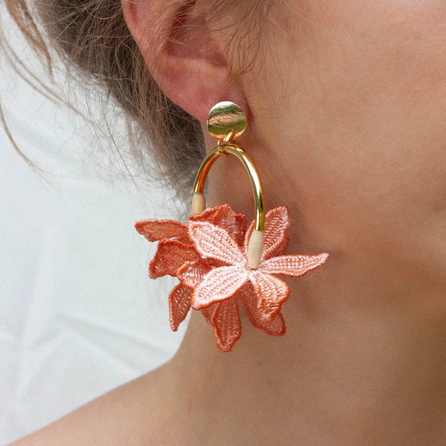 Inspired by one of our world's most beautiful traditions, lei, these ultra light weight statement earrings are for celebrations themselves. They are named after the lei making method that inspired how these earrings are assembled which is through piercing the florals.