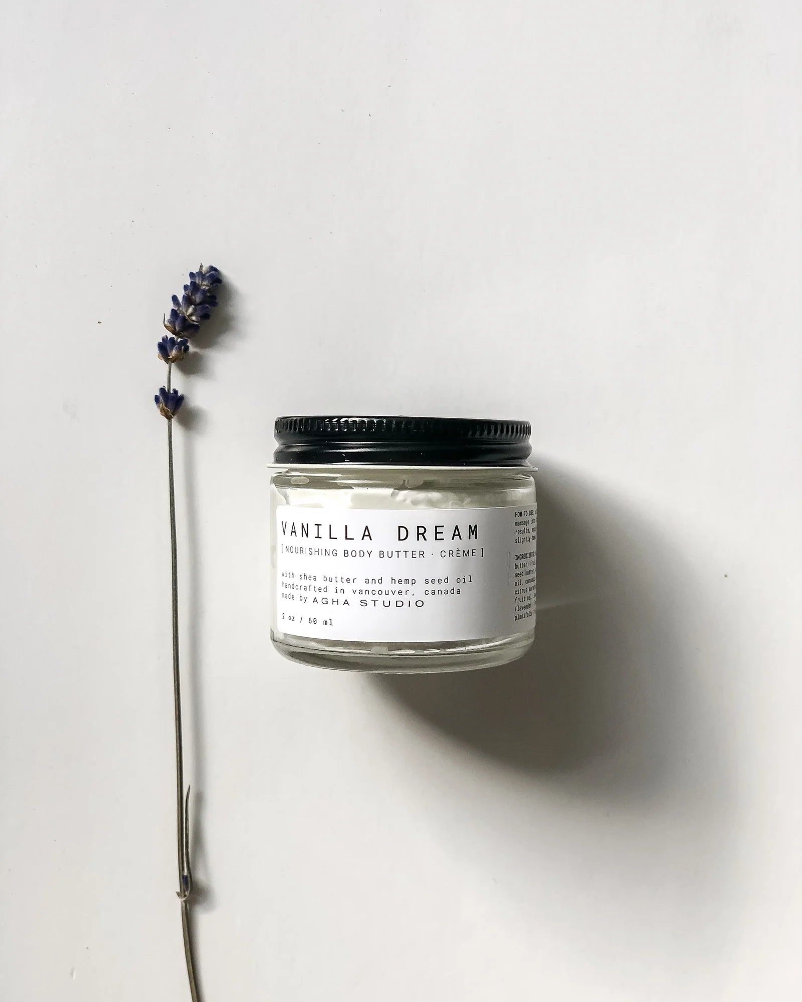 The Nourishing Body Butter is a deeply hydrating cream made with shea butter and hemp seed oil. Its whipped texture melts effortlessly into the skin, leaving it soft, smooth, and replenished. A comforting blend of vanilla, lavender, and bergamot essential oils