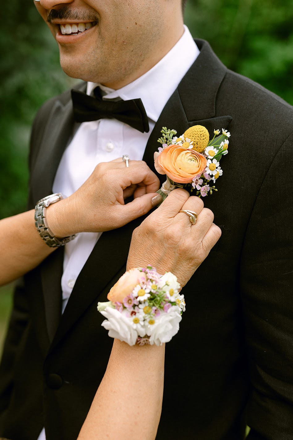 A delicate touch for your special day. Our Wrist Corsage features a carefully composed selection of seasonal blooms and soft greenery, securely fastened on a neutral band for a comfortable, elegant fit. Designed to complement your colour palette, each corsage is artfully crafted with care and attention to detail. Simply choose from our six curated palettes, and we’ll take care of the rest — ensuring a timeless, refined look.