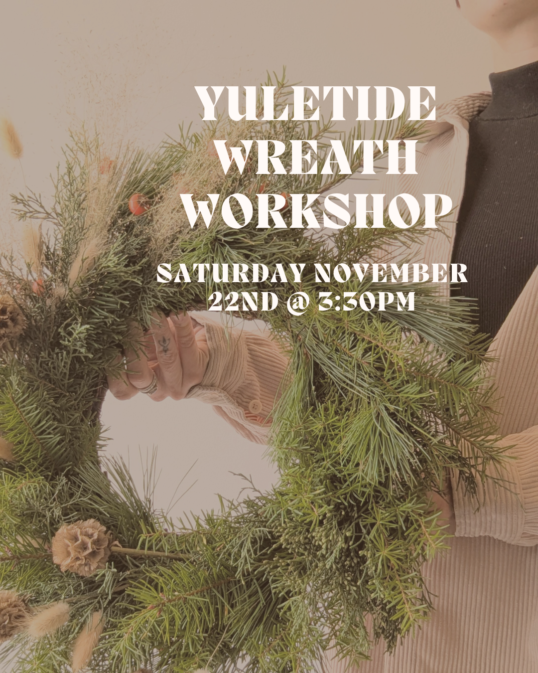 Yuletide Wreath Workshop: Saturday November 22nd @ 3:30PM